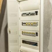 Основной Столб с электрощитом расположен на участке у входной группы. Силовой кабель (медный) запитан и заведен в дом к внутреннему электрощиту. Вся электрика разведена по дому.
