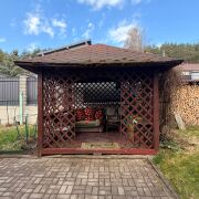 Есть просторная беседка, идеальная для отдыха, семейных обедов и летних вечеров.