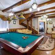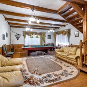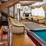 — просторная гостиная 37,9 м2 с камином и бильярдом
