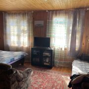 Уютный двухэтажный домик из бруса,готовый к загородной жизни.Есть баня , тоже из бруса,беседка,небольшой сарай и две теплицы.Туалет на улице,вода сезонная.