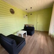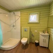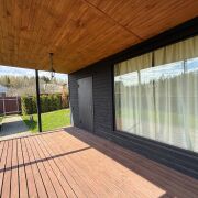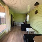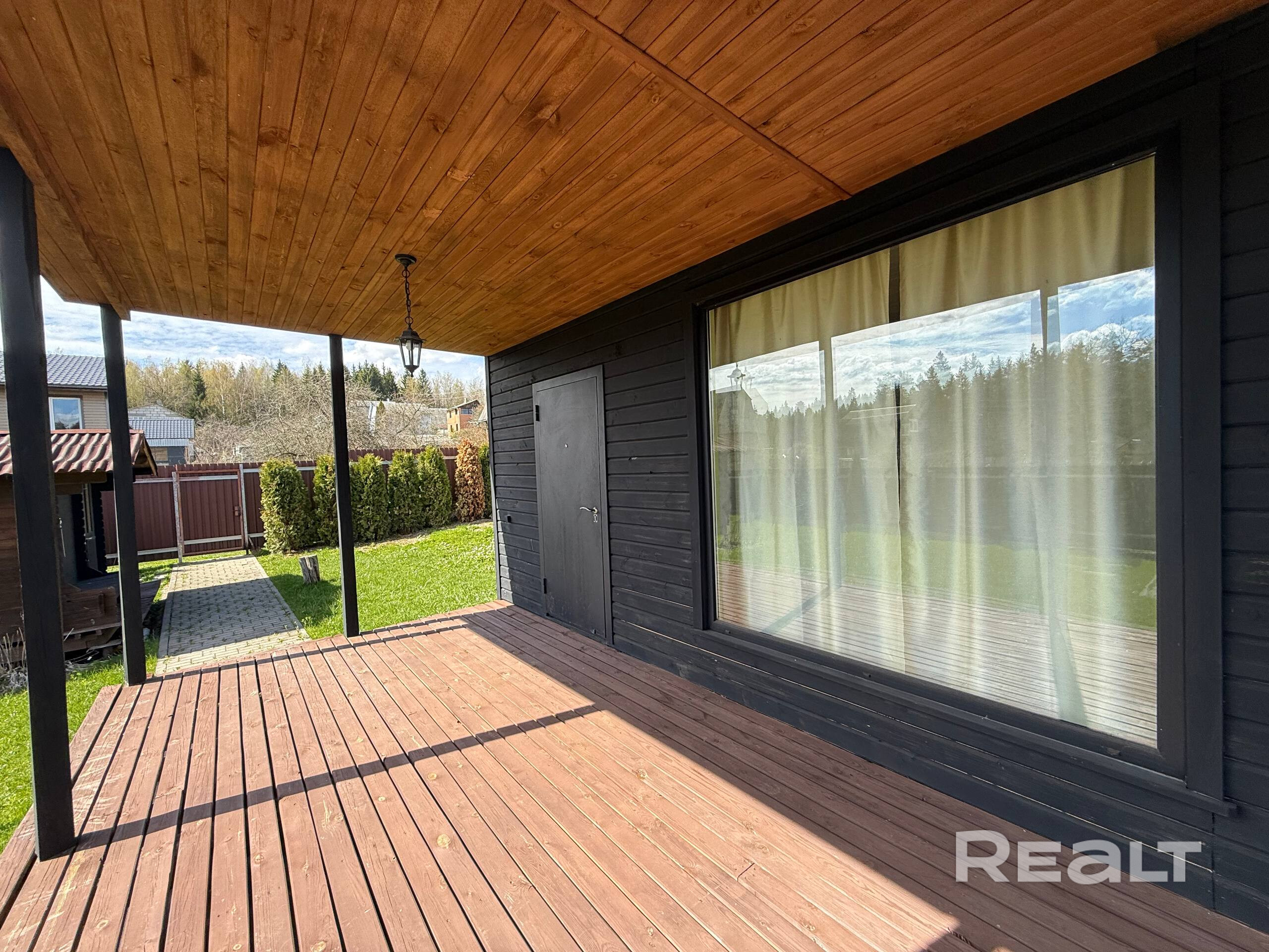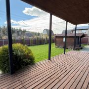 Тихое место в окружении леса. Участок с ландшафтным дизайном: газон, плитка, туи Современный каркасный дом с панорамным окном. Большая, уютная терраса. Санузел в доме (душ, бойлер, канализация)