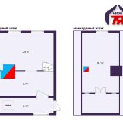 - Общая площадь дома - 43,6 кв.м., из которых 35,3 кв.м. - жилая площадь, а кухня - 8 кв.м. Пространства достаточно для комфортного сезонного отдыха.