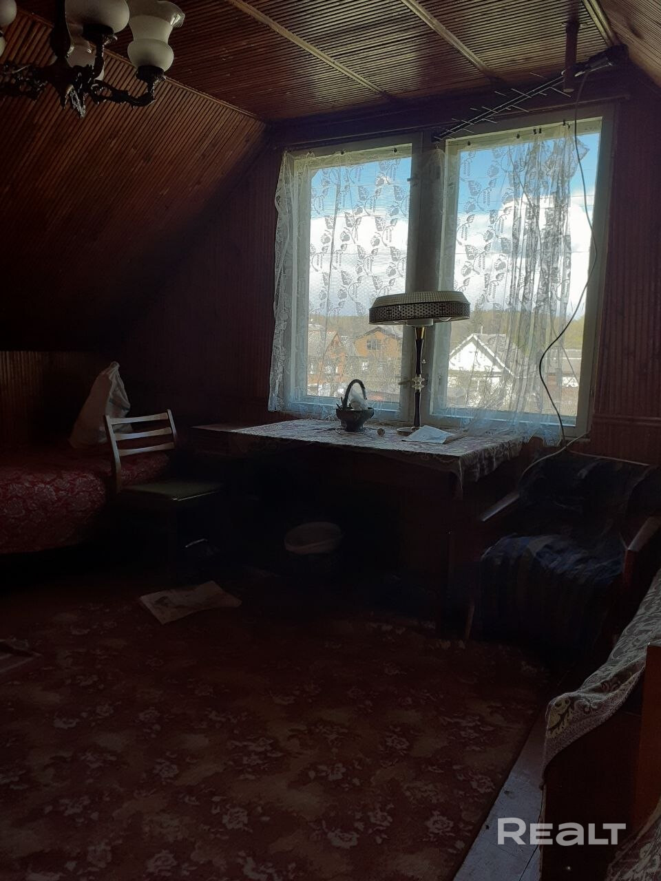 Продается уютный кирпичный дом в садовом товариществе «Уша Плюс», всего в получасе минутах езды от Минска. Двухэтажный дом: кухня + две комнаты на первом этаже, большая комната + кладовая на втором. Отопление — печное. Вода — сезонная, заведена в дом, холодная вода. Душ и туалет на улице. К дому пристроена небольшая веранда. Участок в частной собственности с огородом и теплицей. Хорошие соседи. В садовом товариществе есть продуктовый магазин и остановка маршрутки до Минска