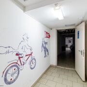 Лифт опускается в подземный паркинг (есть места на продажу).