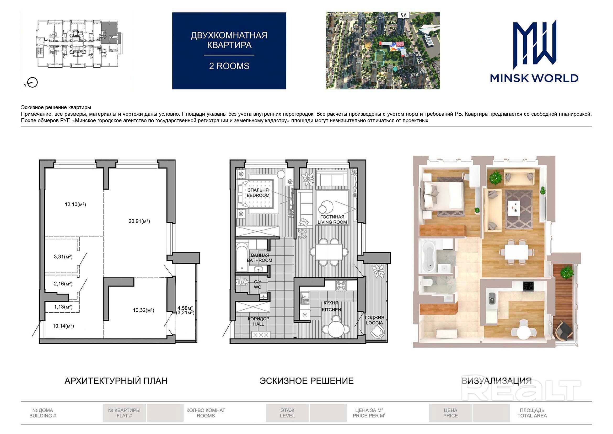 Квартира №15 в ЖК Минск Мир / Дом 9.6, площадью 63.28 кв.м.