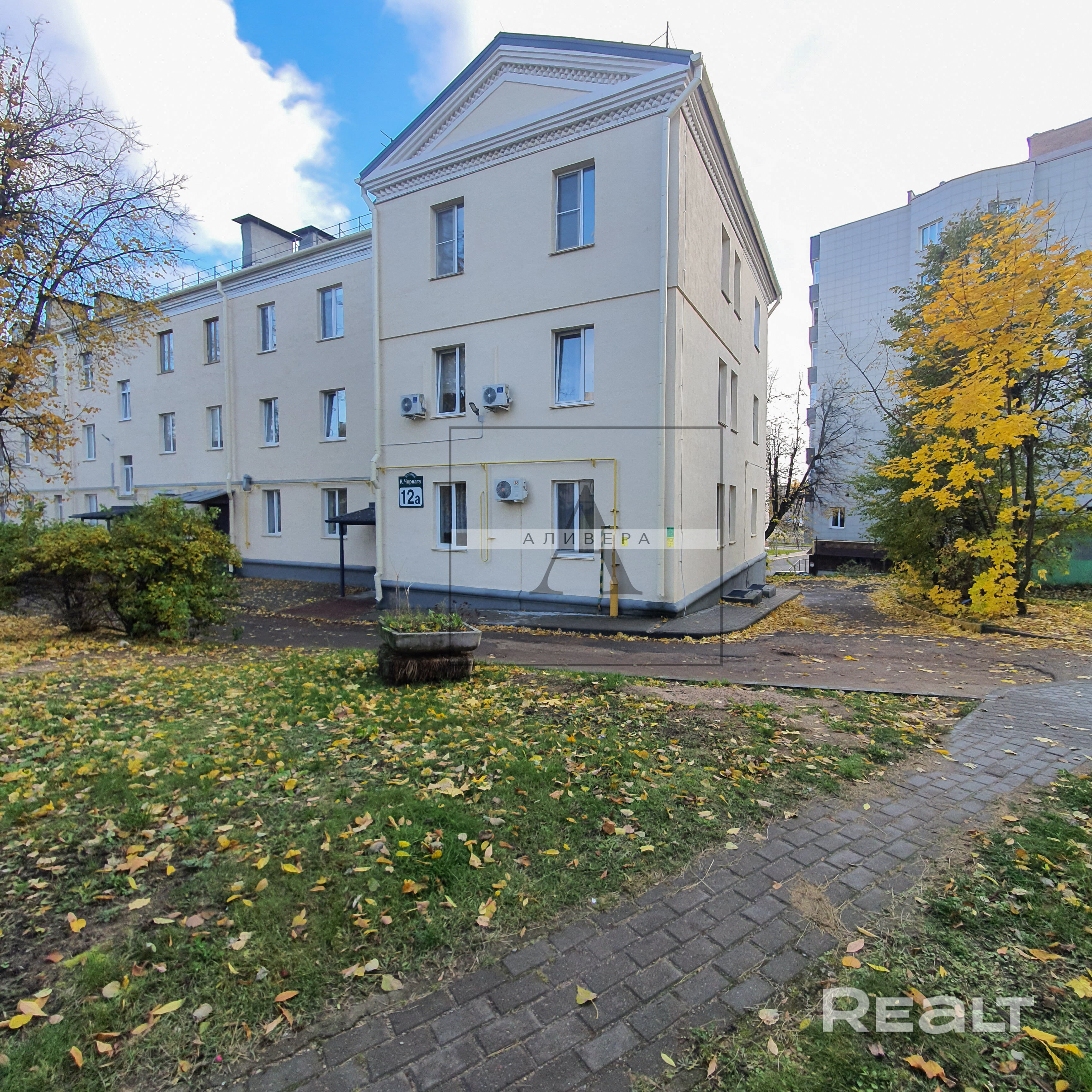 Продается 3-к. квартира (сталинка) в пешей доступности от ст.м. "Парк Челюскинцев" и «Академия наук» по адресу: г.Минск, ул. К. Чорного, д. 12А. Дом кирпичный, после капитального ремонта - утеплен и оштукатурен, произведена замена всех окон, коммуникаций, установлены новые батареи, есть свое теплое подвальное помещение. Квартира под ремонт! Расположена на 1-м высоком этаже 3-этажного дома. Есть возможность использовать ее под коммерческую недвижимость.