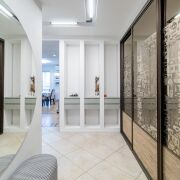• В квартире уложена керамическая плитки и керамогранит производства Италии, пол с электро-подогревом, в комнатах дубовый паркет; стены выкрашены стойкой интерьерной краской; потолок навесной из гипсокартона с подсветкой, потолочными и трековыми светильниками; межкомнатные двери из массива с итальянской фурнитурой; качественные окна ПВХ с широкими подоконниками и прекрасным панорамным видом на две стороны; входная металлическая дверь; высокие потолки