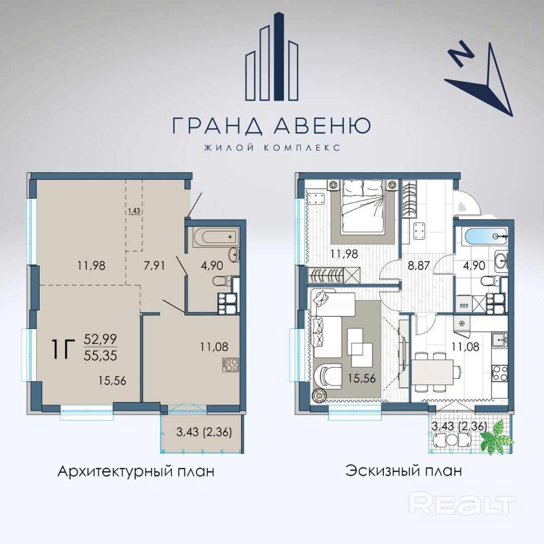 Двухкомнатная квартира от ЗАСТРОЙЩИКА в ЖК "Гранд Авеню"