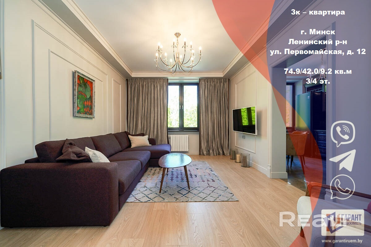 Вашему вниманию представлена шикарная 3-комнатая квартира в самом центре столицы – ул. Первомайская, 12.