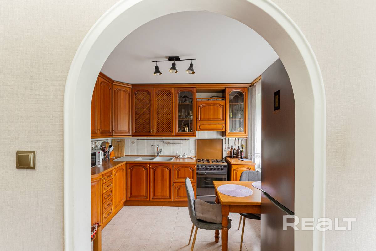 - Вся мебель из массива, электрический подогрев пола в ванной и на кухне, газовая плита, высота потолков 2,5 м.