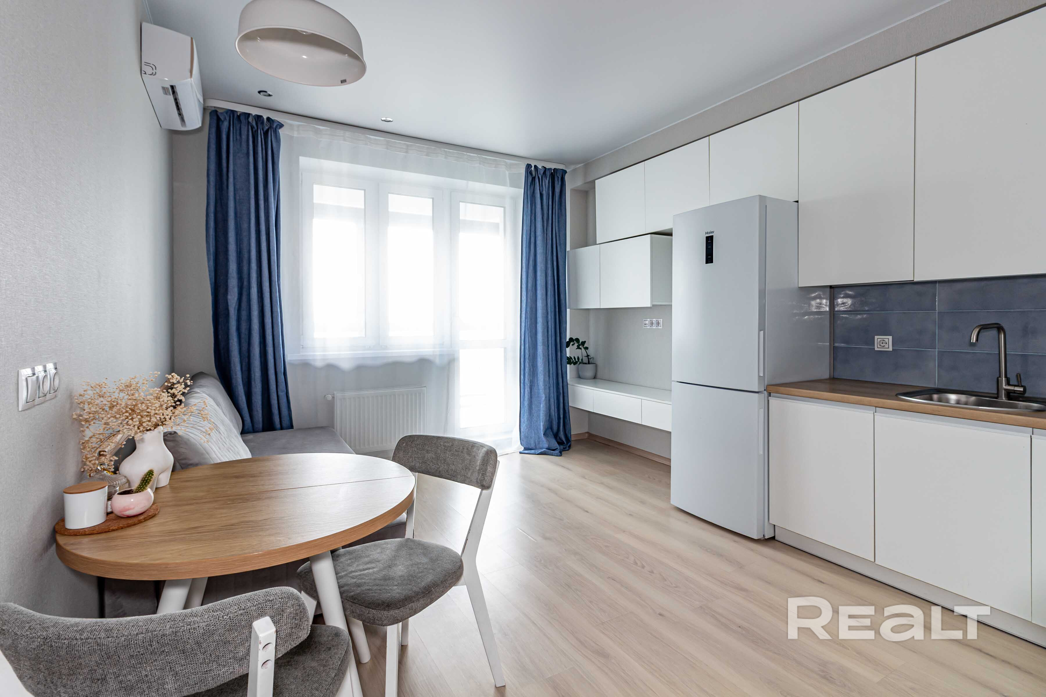 Квартира солнечная, светлая, с качественным ремонтом и эргономичной планировкой - разделена на зону кухни-гостиной и зону спальни с вместительной гардеробной. Полностью меблирована и готова для проживания. Стильная кухня со встроенной бытовой техникой. Ванная комната с современным сантехническим оборудованием. Установлен кондиционер.