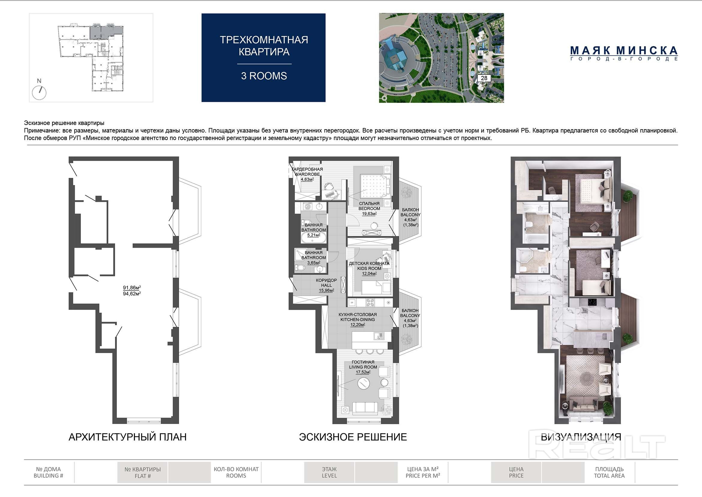 Квартира №61 в ЖК Маяк Минска / Дом 28, площадью 94.9 кв.м.
