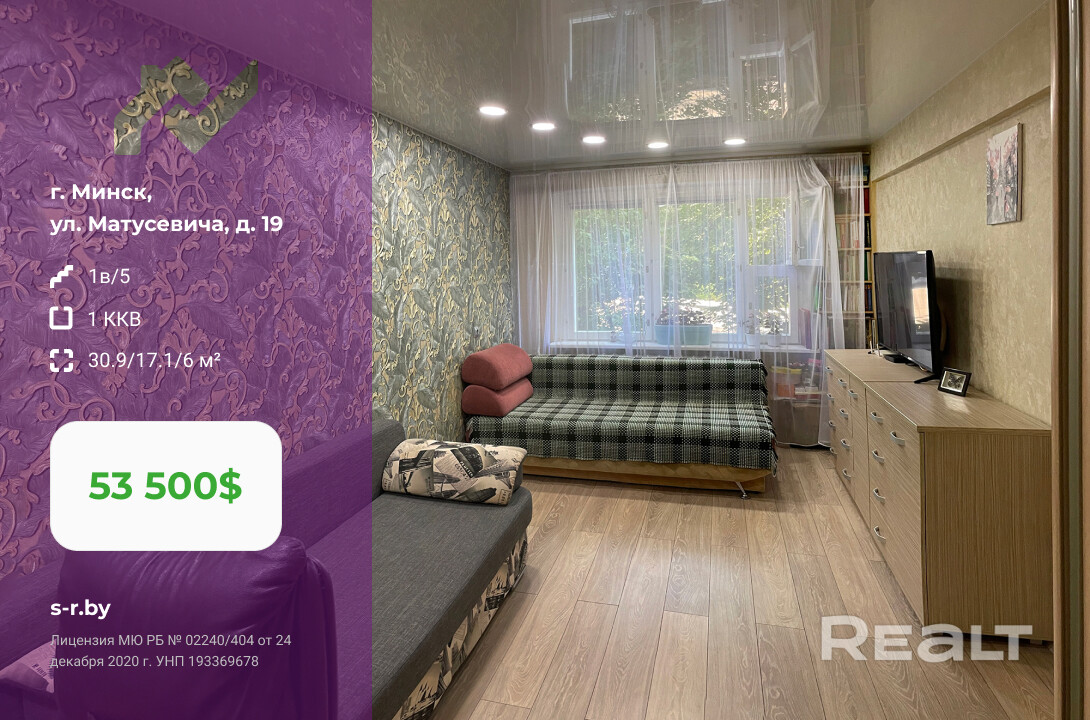 1-комнатная квартира по адресу ул.Матусевича-19