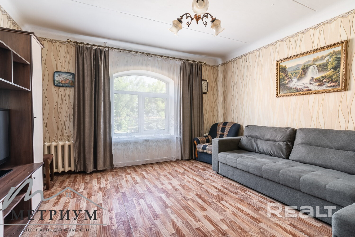 Продается роскошная четырехкомнатная квартира в теплом кирпичном доме в самом центре Минска. Давно сформировавшаяся инфраструктура вас только порадует. В непосредственной близости станция метро Площадь Победы, гимназия, бизнес-центр, рестораны и магазины, два детских сада номер 111,67 и школа 91.В 5 минутах ходьбы парк Горького, где можно отдохнуть всей семьей на берегу реки Свислочи. В квартире выполнен отличный ремонт, на полу паркет, установлены окна ПВХ, квартира продается частично с мебелью. Но самой изюминкой этой квартиры является эксклюзивный выход на 10 метровую крышу с видом на открытое пространство площади трамвайного кольца.