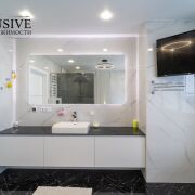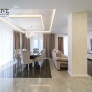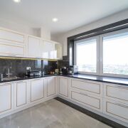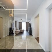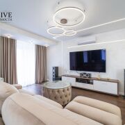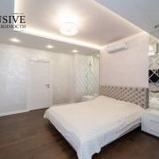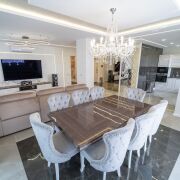 Квартира полностью оснащена эксклюзивной дизайнерской мебелью, бытовой техникой премиум класса. При ремонте были использованы только люксовые материалы.