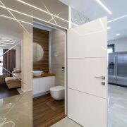 Полы: импортный керамогранит 800*800. Все плиточные полы с подогревом - 5 зон обогрева, каждая с управлением со смартфона. Паркет - 3хслойный дуб под маслом компании Coswick.