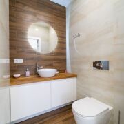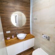 В санузлах черновая сантехника Вавин, чистовая - Laufen, Jacob Delafon, Hansgrohe. Ванна с максимальным наполнением гидромассажной системой Keller.
