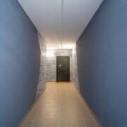 В коридоре и технических комнатах - натяжной потолок.