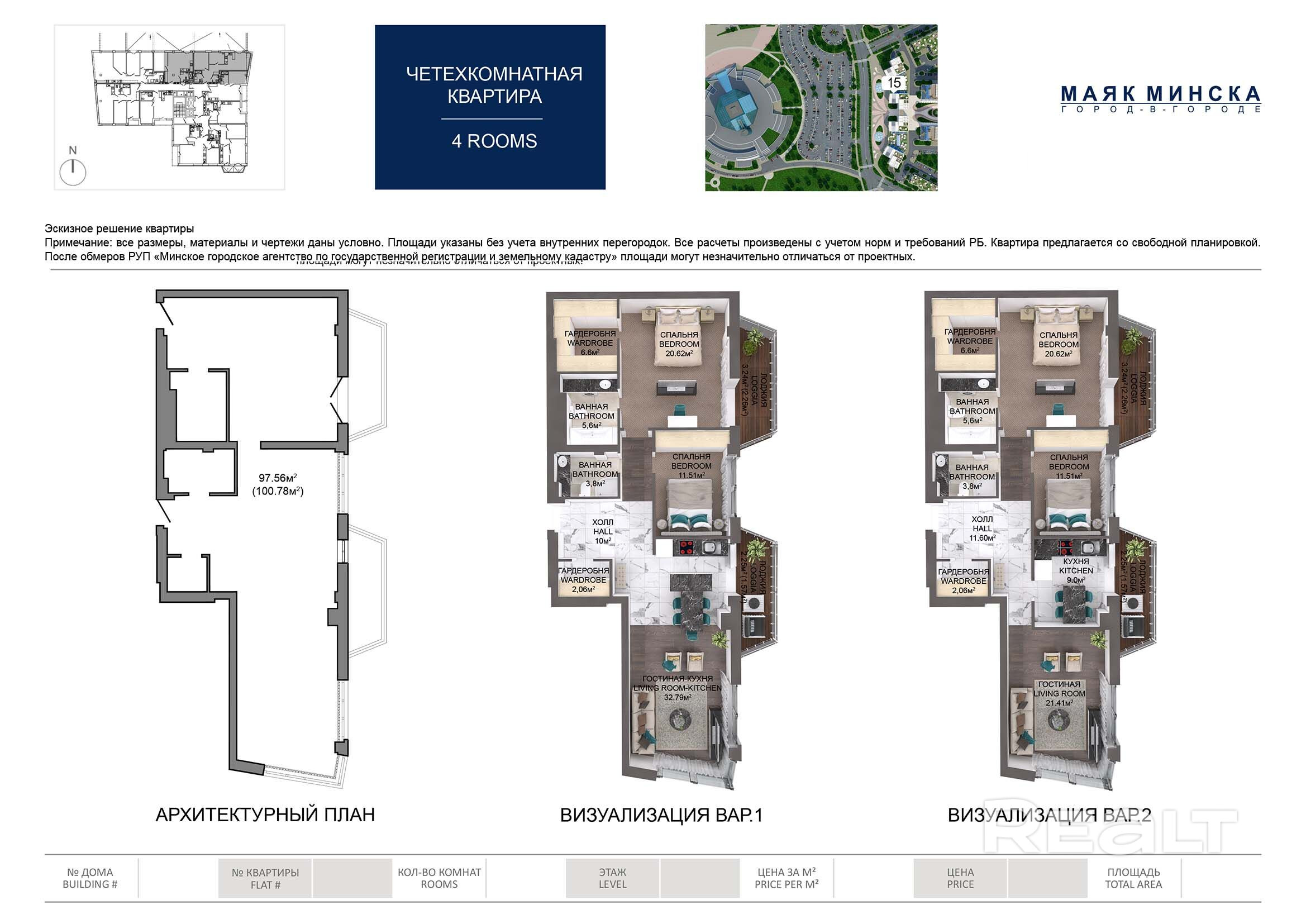 Квартира №25 в ЖК Маяк Минска / Дом 15, площадью 98.4 кв.м.