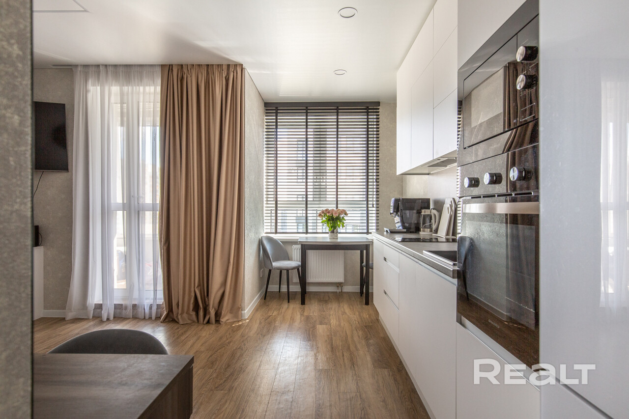 При входе вместительный шкаф для верхней одежды. Встроенная кухня с фурнитурой Blum и техникой (электрическая плита, вытяжка, духовой шкаф, микроволновая печь, холодильник, посудомоечная машина). Так же установлены фильтры для воды.