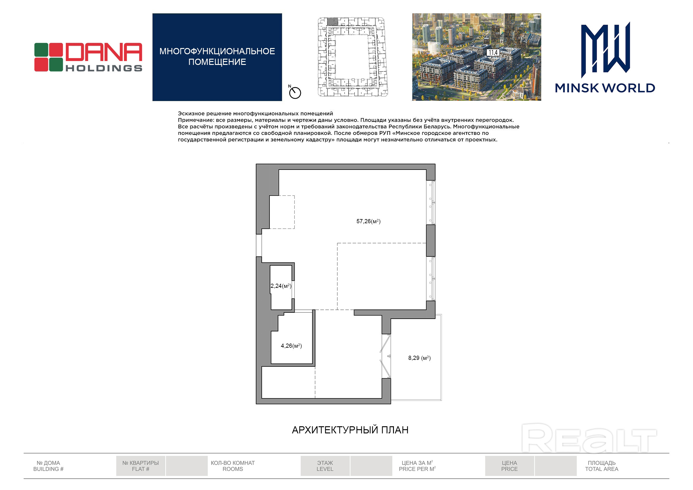 Бизнес-апартаменты № 14.2 в ЖК Минск Мир / Дом 11.4, площадью 72.06 кв.м.