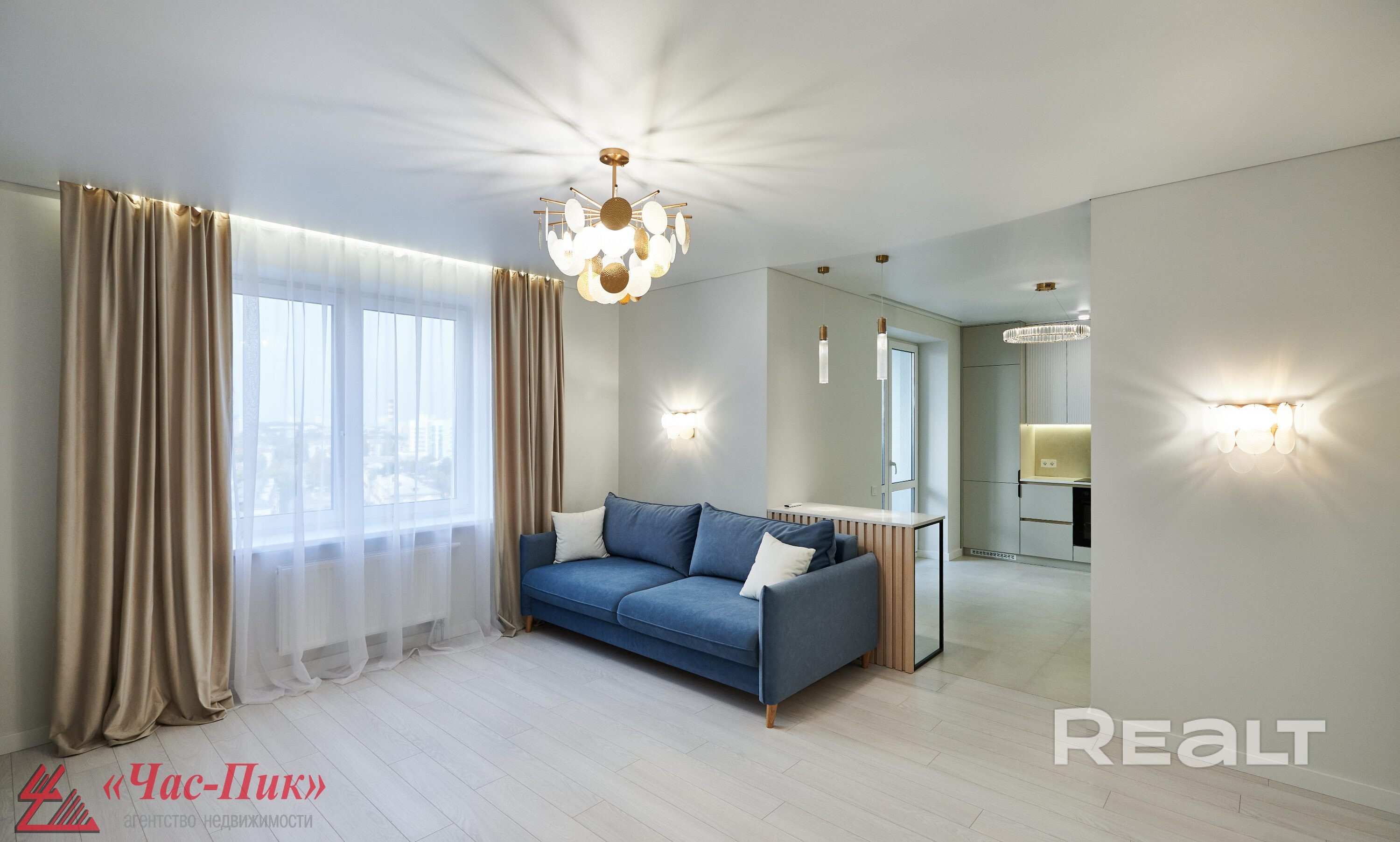 Качественная отделка современными материалами, всё продумано до мелочей. Декоративная штукатурка, керамогранит, столешницы из камня, теневой потолок, двери МДФ. Встроенная кухня со стеклянной витриной, винный шкаф, вся техника встроенная, посудомоечная машина, холодильник.