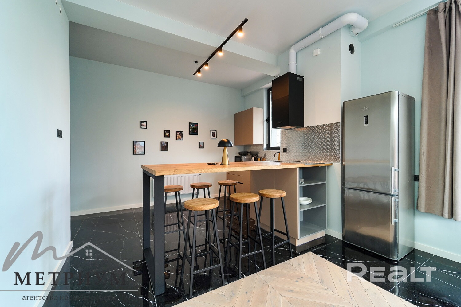 В здании современного БЦ, расположенного в центре столицы, на верхнем этаже продаются просторные апартаменты, оборудованные всем необходимым. Дизайнерский ремонт с использованием качественных дорогостоящих материалов, технологий и техники. Апартаменты состоят из кухни-гостиной 36,4м2, двух жилых комнат (27,5 и 19,4м2), 2 санузлов, гардеробной. Из всех комнат и гостиной есть выходы на террасу (67,5м2). Все стены вдоль террасы имеют панорамное остекление. Лестница на террасе ведет на эксплуатируемую кровлю с зоной релакса. На кровле имеется помещение (35,9м2), оснащенное душевой и санузлом. С большой огражденной террасы с озеленением площадью 158,7м2, открываются красивые виды. Хорошая инвестиция: апартаменты готовы для сдачи, как с целью проживания, так и проведения различных мероприятий.