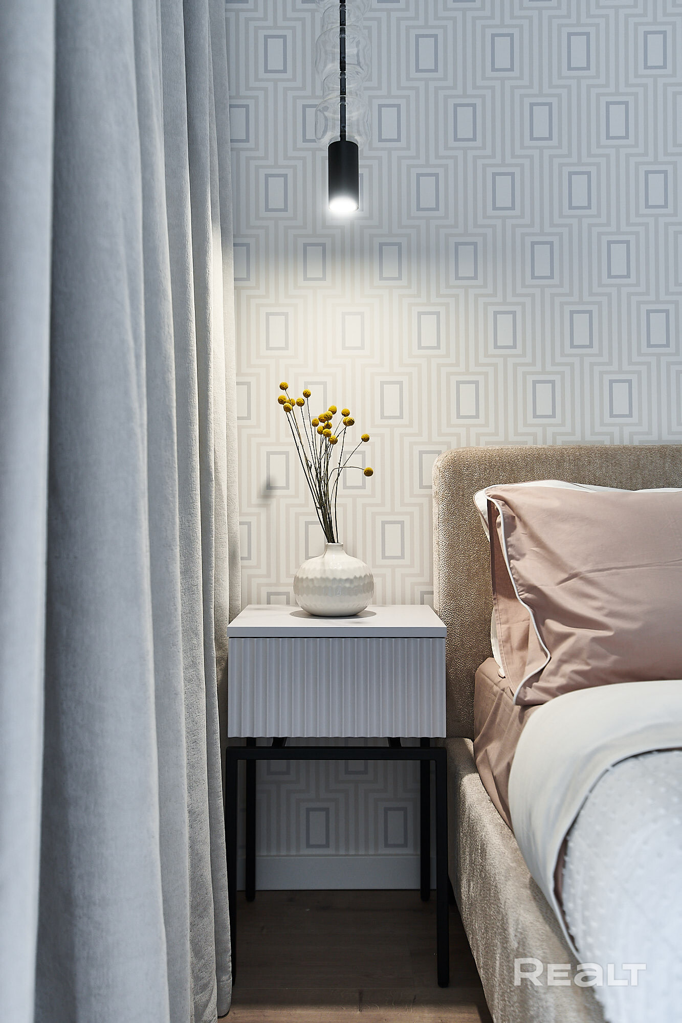 Современная удобная планировка с кухней-гостиной, изолированной спальней, рабочим кабинетом, оборудованной гардеробной и большим санузлом.