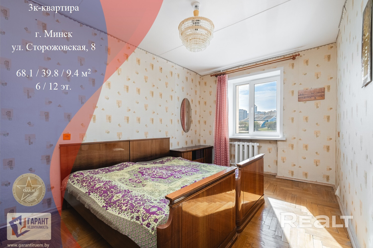 Просторная 3-х комнатная квартира по адресу ул. Сторожовская, д.8, расположена на шестом этаже двенадцати этажного кирпичного жилого дома, окна выходят на запад и восток. Общая площадь 68,1 кв.м., жилая 39,8 кв.м., кухня 9,4 кв.м. и лоджией 3,5 кв.м. Квартира готова к проживанию, хотя и требует финансовых вложений. На полу залита стяжка и уложен паркет, на стенах обои, в санузлах плитка. Окна частично заменены на пластиковые стеклопакеты, на лоджии установлена алюминиевая рама. В квартире имеется кладовая комната и встроенный шкаф. Дом оборудован системой видеонаблюдения, в подъезде установлено два пассажирских лифта.
