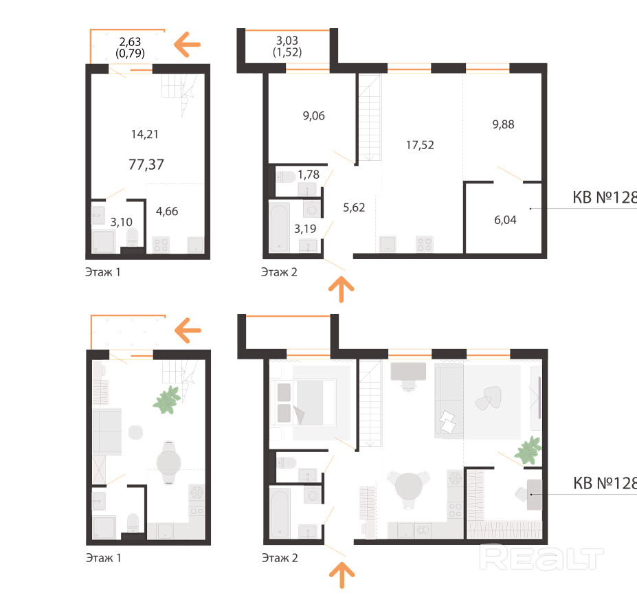 Двухуровневая квартира с отдельным входом! Монолитный дом в Новой Боровой