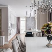 Продуманное пространства квартиры с кухонной, обеденной и гостевой зонами, а также отдельными спальней и детской. Два санузла (для тех, кто привык жить в быстром темпе – санузел с душевой кабиной, кто, наоборот, любит размеренность – санузел с ванной), две гардеробных и постирочная