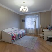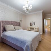 - уютная спальня, украшена изысканным текстилем и со вкусом подобранной мебелью. Нежный свет и спокойные цвета создают атмосферу для расслабления и отдыха, а просторная гардеробная позволяет организовать грамотное хранение вещей;