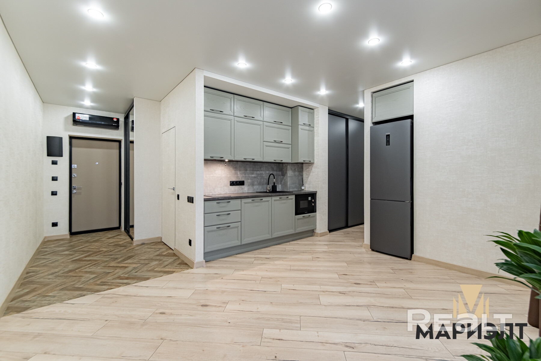 Площадь квартиры по СНБ 58,8 м2. Дом сдан в 2022 г., сделан отличный ремонт. По цветовой гамме спокойные тона. Есть кондиционер.