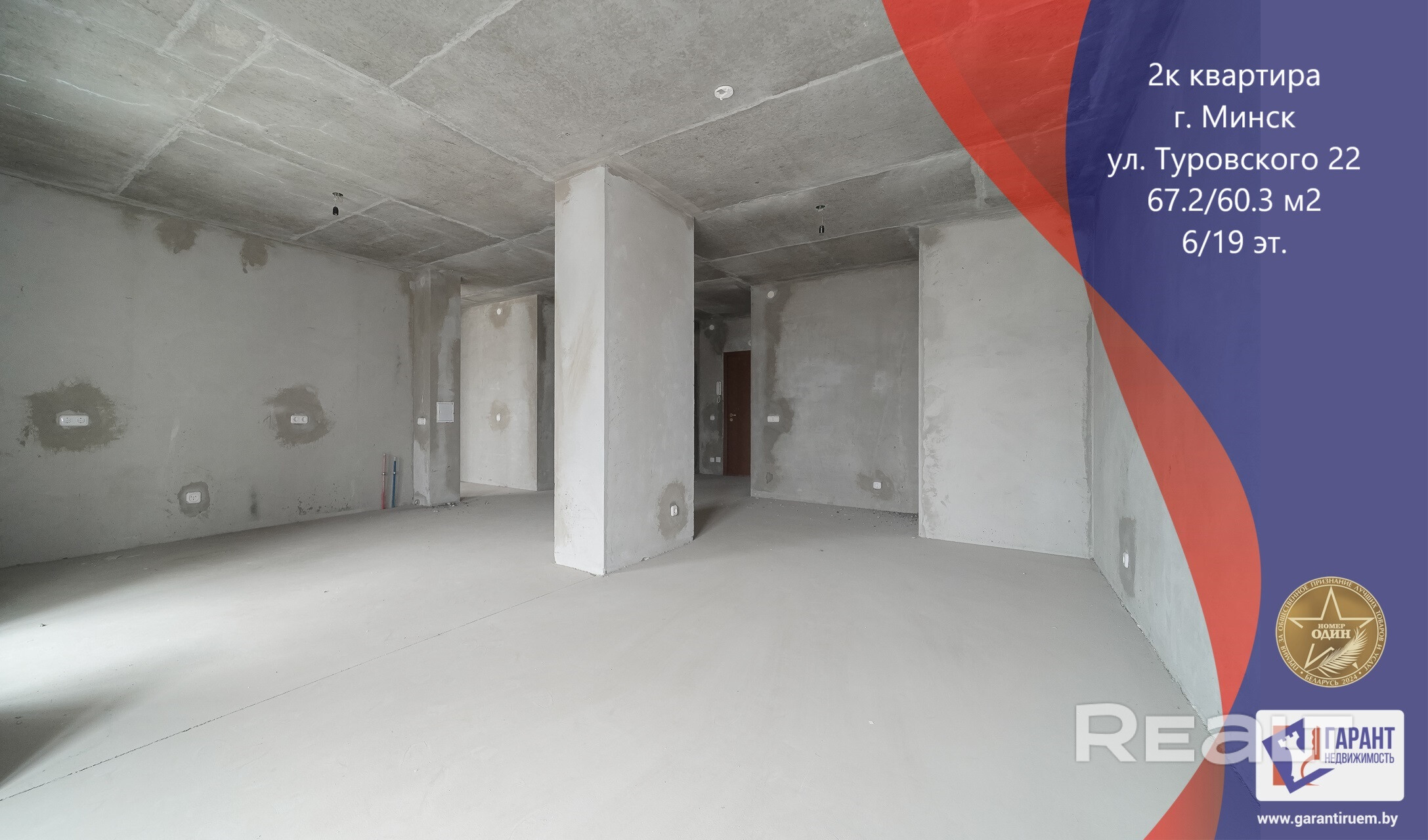 Просторная двухкомнатная квартира свободной планировки по улице Кирилла Туровского, д.22. Расположена на шестом этаже девятнадцатиэтажного жилого дома, окна выходят на восток.