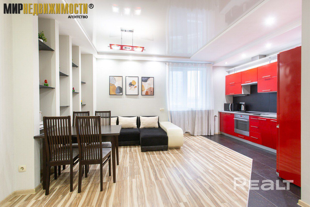 Продуманное зонирование: две изолированные комнаты, а также просторная гостиная, совмещенная с кухней (евро 3). Встроенная кухня с вытяжкой, посудомоечной машиной и духовым шкафом BOSH. Полы ламинат и плитка. Качественная шумоизоляция.