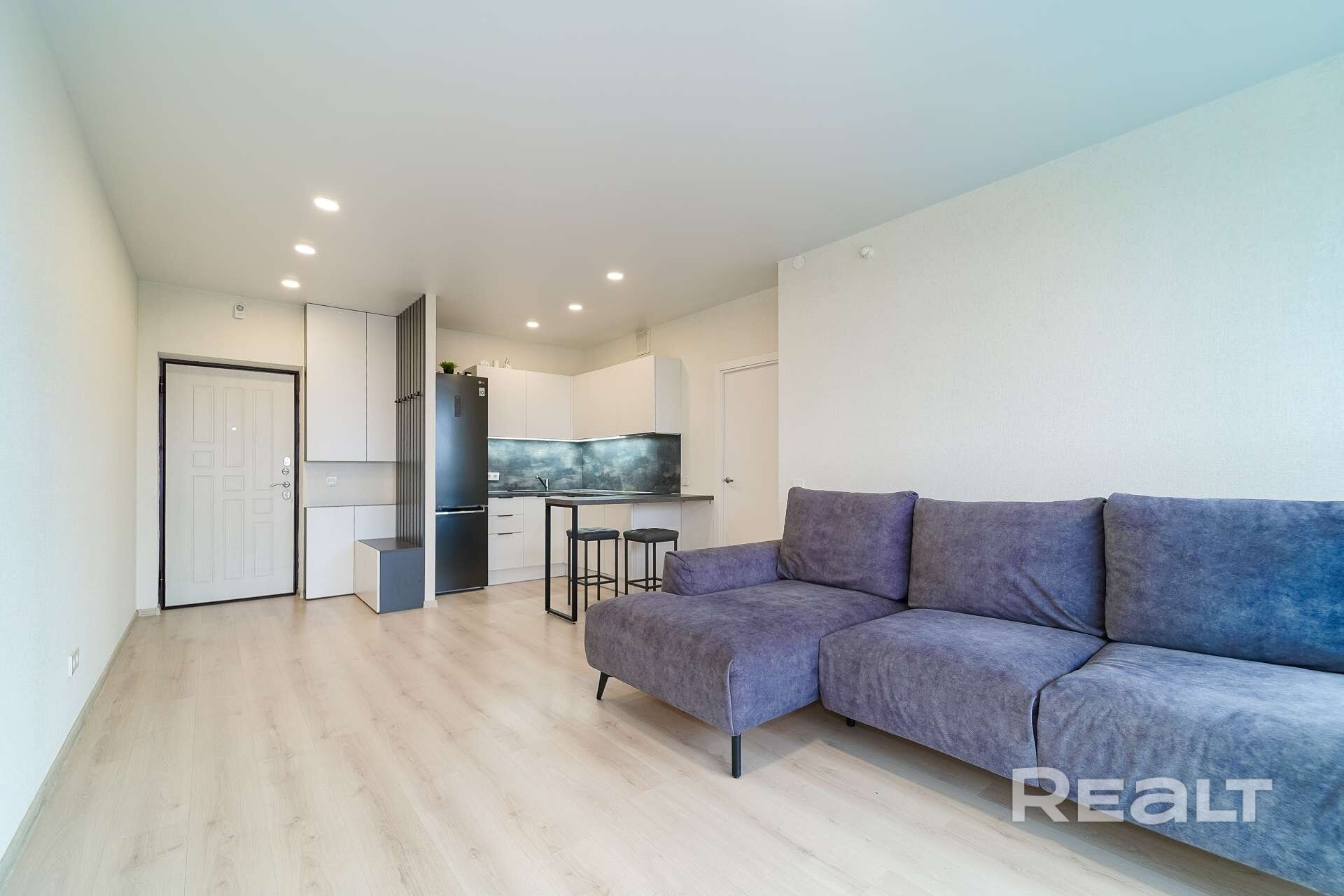 - Квартира укомплектована мебелью и техникой: плита Haier, посудомойка Midea, холодильник LG
