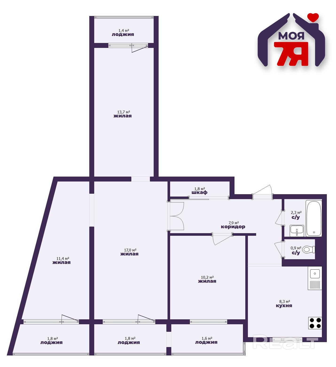- Просторная кухня 8,3 м2 станет прекрасным местом для приема гостей и приготовления любимых блюд.