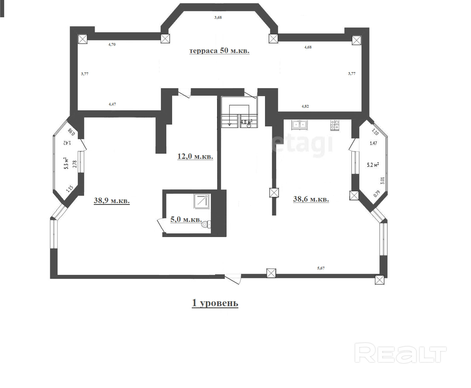 · Площадь по СНБ 282,2 м.кв., общая – 252,3 м.кв., терраса – 50 м.кв.