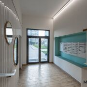 Комплекс обладает необходимой для жизни инфраструктурой, безопасностью и уникальным благоустройством. Территория полностью обнесена забором, въезд осуществляется через шлагбаум по чипу домофона. Дом расположен в живописном месте между лесом и минским морем, при этом сюда легко добраться до Минска 7 минут на автомобиле
