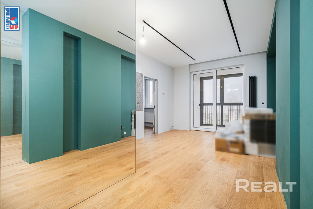 Панорамное сдвижное окно с выходом на лоджию. Межкомнатные двери скрытого монтажа.