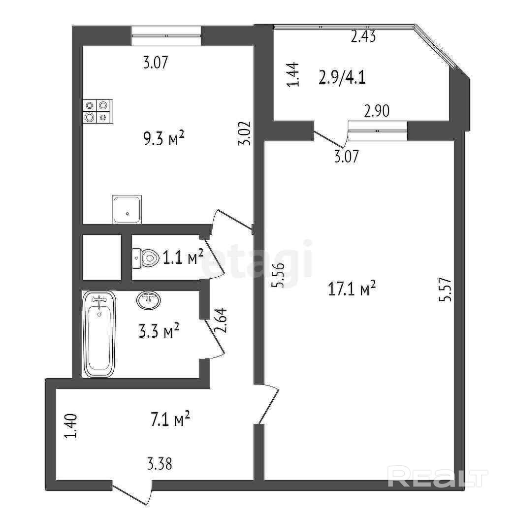 17.1 м²