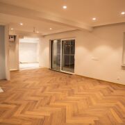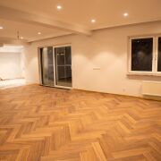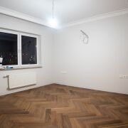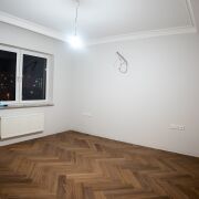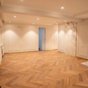 - Паркет из американского ореха, уложенный в «английскую ёлку»;
