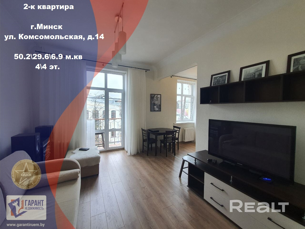 Продается 2-х комнатная квартира по ул. Комсомольская 14. Квартира располагается в историческом центре самого сердца Столицы. В квартире произведен стильный ремонт из качественных материалов. Вся мебель и техника остается новым владельцам. Из окон открывается прекрасный вид на пешеходную улицу. Тихий внутренний двор с детской площадкой и зелеными насаждениями. Полностью подготовлена для проживания. Отличная инфраструктура. Большая концентрация культурных объектов, ресторанов, кафе, скверов и мест для прогулок и отдыха. Рядом банки, почта, кинотеатры. Дом является памятником историко-культурного наследия. Шаговая доступность к центральным станциям метро, остановкам общественного транспорта. Идеальное место для жизни или сдачи в аренду.
