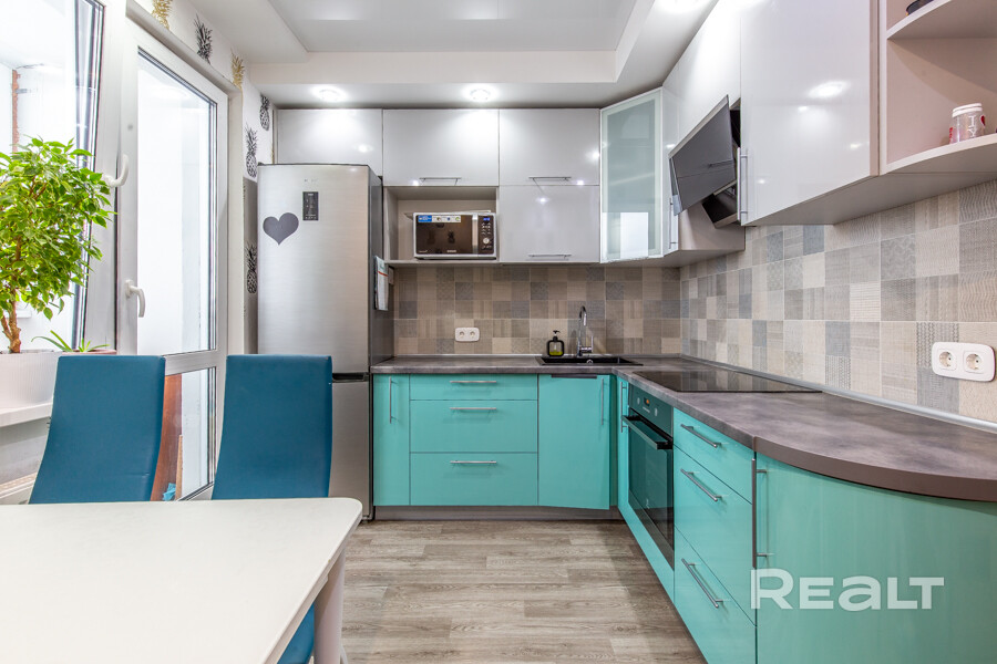 Продаётся однокомнатная квартира с отличным ремонтом. На полу во всех комнатах линолеум, плитка в санузлах. Натяжные потолки с светодиодными точечными светильниками. Просторная кухня со встроенной техникой. Металлическая входная дверь, окна ПВХ, застеклённая лоджия (ПВХ). Два просторных встроенных шкафа купе в коридоре. Очень тёплая и уютная квартира, счётчики на тепло, высокие потолки. Благодаря высокому этажу открывается красивый вид из окна. Свежий дом, отличное товарищество, всегда чистый и аккуратный подъезд, дружные соседи, нет проблем с парковочными местами, так как рядом Евроопт с большой парковкой. Тамбур закрыт на электронный замок. Развитая инфраструктура. Удобный выезд на МКАД. До метро «Каменная горка» 10 минут на общественном транспорте. До станции ЖД Лебяжий 15 минут пешком. Рядом много магазинов, ТЦ Квадро, ТЦ Караван, ТЦ Бонус, аптека, банк, поликлиника детская и взрослая, гимназия, детские сады, почта, недалеко обустроенный парк им. Уго Чавеса. Отличный вариант для комфортной жизни или для выгодных инвестиций. Торг.