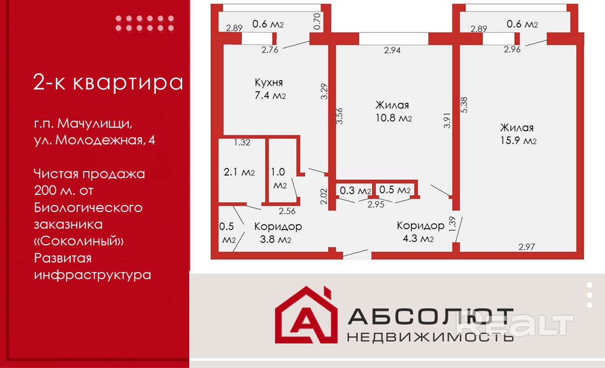 Продажа 2-к квартиры в г.п. Мачулищи, ул. Молодежная, 4