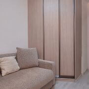 В спальне имеется встроенный угловой шкаф, по всей квартире натяжные потолки.