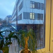 Окна выходят на  2 стороны. Открывается красивый вид, особенно из французского окна.