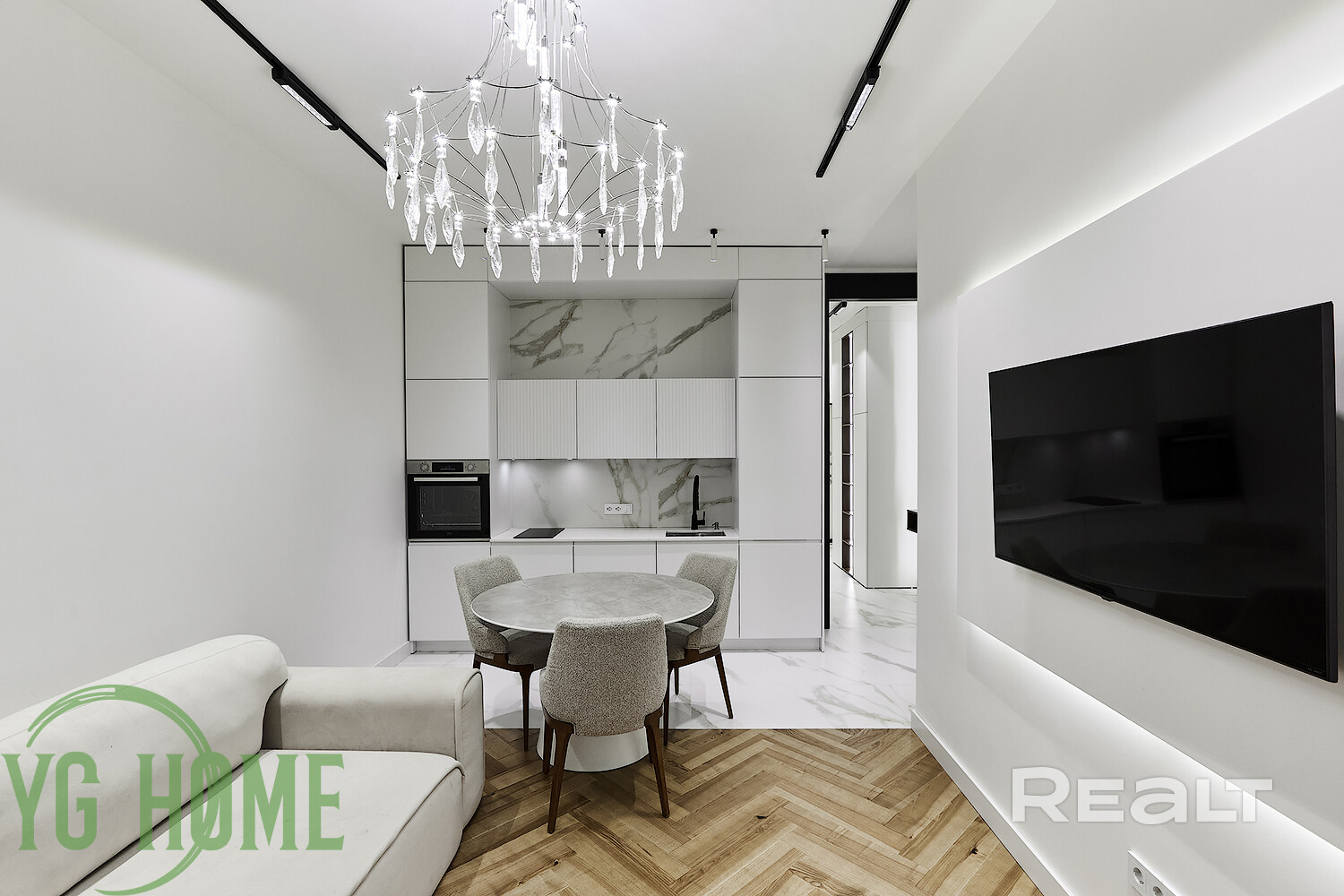 Дизайнерский ремонт в квартире выполнен в приятных светлых тонах, использованы качественные стройматериалы. Квартира полностью укомплектована всей необходимой мебелью и техникой (духовой шкаф, варочная поверхность, посудомоечная машина, вытяжка), необходимой для комфортного проживания. Предусмотрены выводы для установки кондиционера, домофона и стиральной машины. Оригинальное световое решение продумано до мелочей. В зоне плитки предусмотрен подогрев полов. Квартира продается со всей мебелью и техникой.