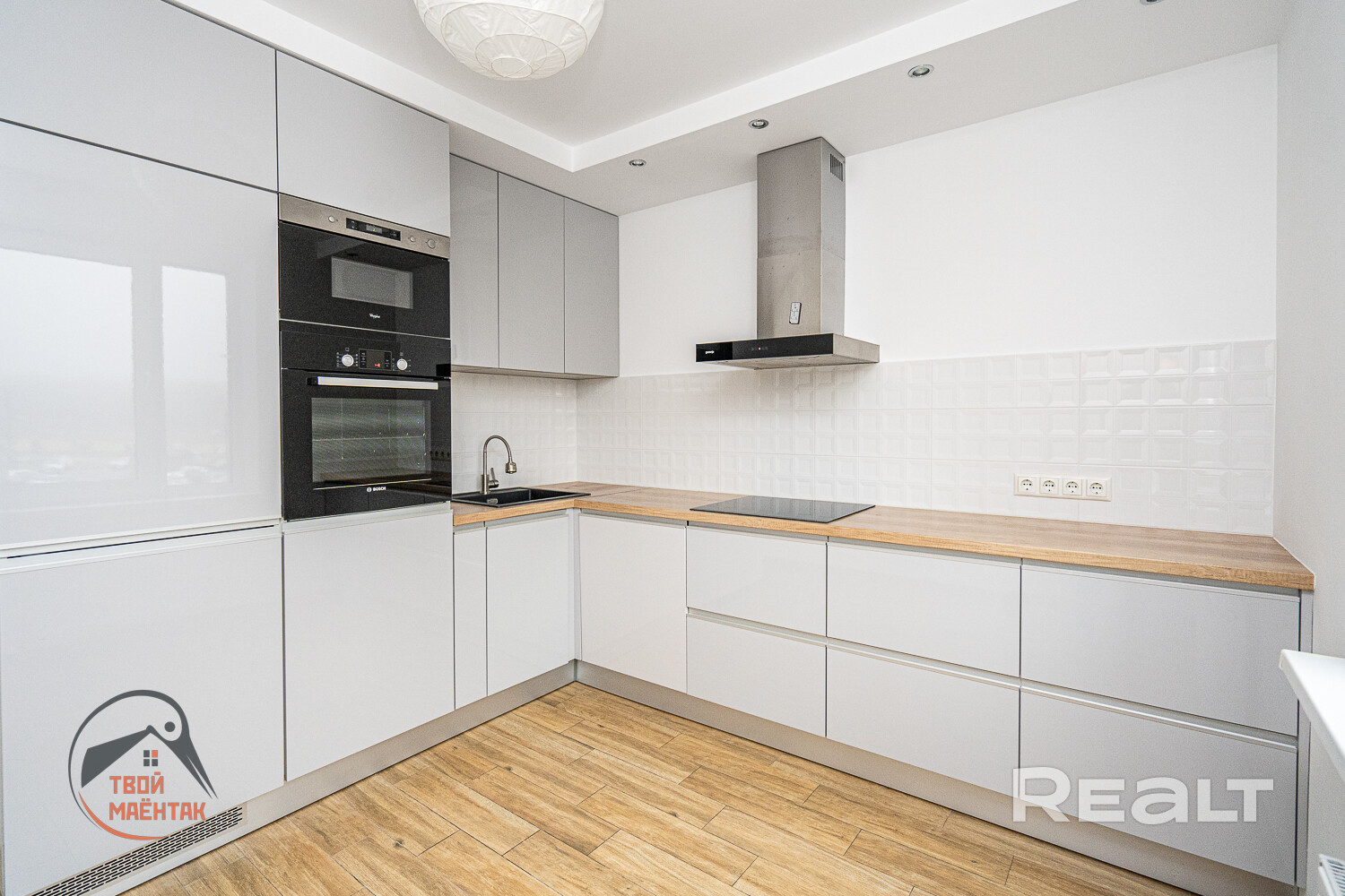 Встроенная кухня с бытовой техникой: варочная панель, духовой шкаф, вытяжка,