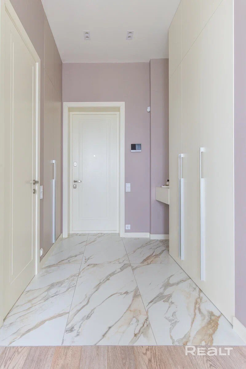 Коридор и прихожая: 5.3 м2. По обе стороны установлены шкафы для хранения, на полу плитка с подогревом видеодомофон.